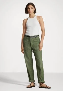 Polo Ralph Lauren CHNO CROPPED FLAT FRONT – Spodnie Materiałowe – Outdoors Olive